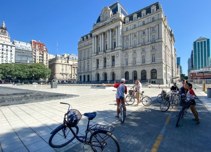 De laatste stop van de rit is op het plein Plaza de Mayo, waar het spectaculaire roze regeringsgebouw van Argentinië staat. Vanaf hier fiets je terug naar het beginpunt, waar je de fietsen inlevert.