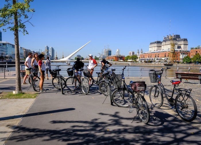 Je fietst onder andere langs Puerto Madero, het nieuwe havengebied met leuke cafés en restaurants. Hier bevindt zich ook de prachtige voetbrug Puente de la mujer. Het is een uniek stukje Spaanse architectuur dat het oude Buenos Aires verenigt met de moderne, nieuwe wijk.