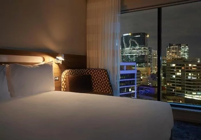Holiday Inn heeft 226 kamers met kamerhoge ramen, die veel licht naar binnen laten schijnen. Alle kamers hebben airco, kluisje, strijkbout en strijkplank, thee- en koffiefaciliteiten, mini-koelkast, flatscreen-tv en gratis wifi. Het is niet zo gebruikelijk in Australië, maar bij dit hotel is het ontbijt in de prijs inbegrepen!