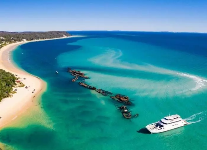 Na een boottocht van iets meer dan een uur komt u aan op Moreton Island en u heeft de hele dag om het eiland te verkennen. Het startpunt is Tangalooma Island Resort, waar u tegen betaling activiteiten kunt doen, variërend van Segway-tours, snorkelen, kajakken, suppen, rondleidingen over het eiland en nog veel meer. U kunt er ook voor kiezen om gewoon te genieten op het strand, te tennissen en proberen te boogschieten. Met een beetje geluk ziet u de beroemde dolfijnengroep van het eiland.