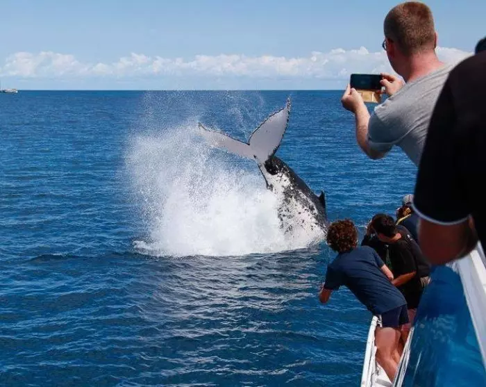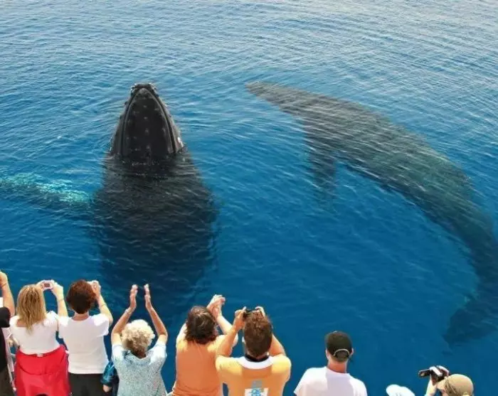 Een speciaal gebouwde catamaran met plaats voor maximaal 80 personen zorgt voor een intense ontmoeting met de walvissen. De catamaran heeft zowel onderwaterramen als een platform op zeeniveau, zodat je de walvissen zowel boven als onder water kunt zien.