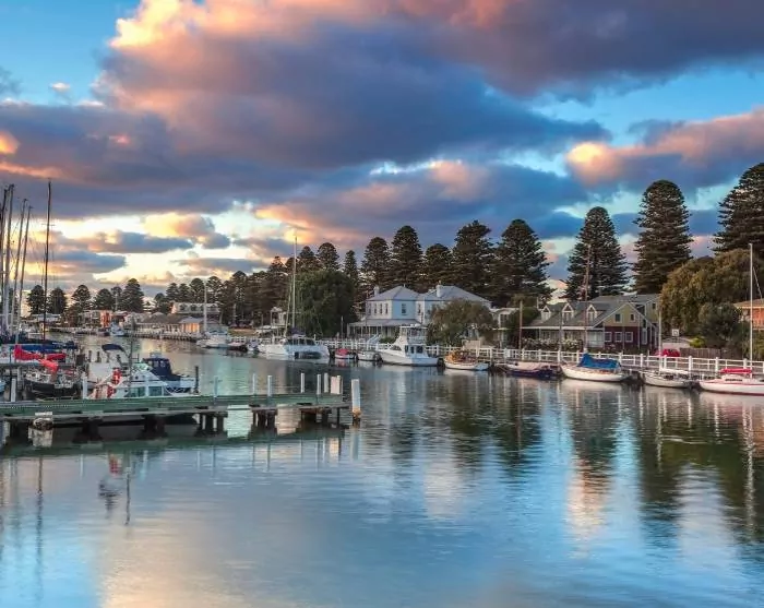 De bestemming van vandaag, de pittoreske badplaats Port Fairy, ligt aan de monding van de Moyne-riivier. Dit plaatsje is een van de oudste nederzettingen van Victoria en was begin 19e eeuw de thuisbasis van zeehondenjagers en walvisvaarders. Verschillende gebouwen uit die tijd bestaan nog en zijn tegenwoordig beschermd.