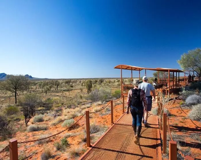 Als de zon is opgekomen, rijdt ca. 50 km westwaarts naar de spectaculaire rotsformaties Kata Tjuta. Het gebied rond Kata Tjuta is ook heilig voor de inheemse bevolking en zijn er plekken waar bezoekers nooit mogen komen. Gelukkig zijn er ook veel plekken die wél toegankelijk zijn en een van de populairste wandelingen door de prachtige rotsformaties is de wandeling door Walpa Gorge. Uw gids zal u onderweg meer vertellen over de geologie van deze prachtige plek. Misschien krijgt u antwoord op de vraag wat “Kata Tjuta” eigenlijk betekent?