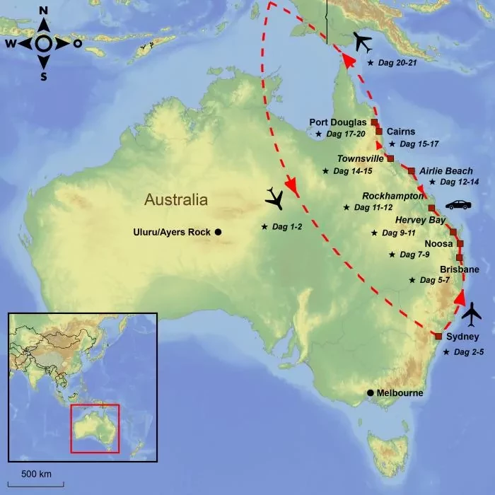 Uiteindelijk arriveert u in Cairns, de drukke kuststad, die vooral bekend staat als vertrekpunt voor excursies naar het grootste koraalrif ter wereld, het Great Barrier Reef.