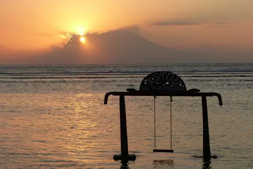 Overdag is de sfeer relaxed en ‘s avonds is de sfeer heel gezellig in de vele restaurantjes en bars. Aan de westkant van het eiland kunt u genieten van de prachtige zonsondergangen boven Bali, en als u geluk heeft en het weer helder is, kunt u zelfs de zon zien ondergaan achter de vulkaan Mt. Agung op Bali. Dat wordt een onvergetelijke belevenis! Er zijn hier geen verharde wegen en auto’s, maar alleen fietsen en paard en wagen.