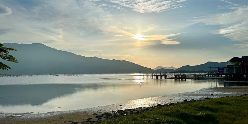 Daarna vervolgden we onze reis richting Hoi An. We namen een langere pauze bij de Lang Co-lagune, waar we onze benen strekten op het strand voordat we verderreden over de Hai Van-pas – de natuurlijke grens tussen Noord- en Zuid-Vietnam – richting Hoi An.