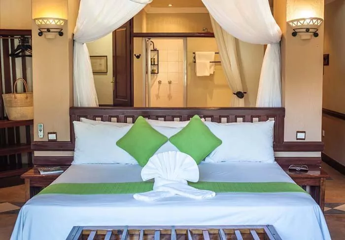 De kamers zijn ruim, modern ingericht en hebben allemaal klamboes bij de bedden, airco en de mogelijkheid om thee en koffie te zetten.