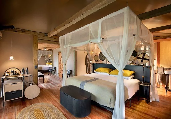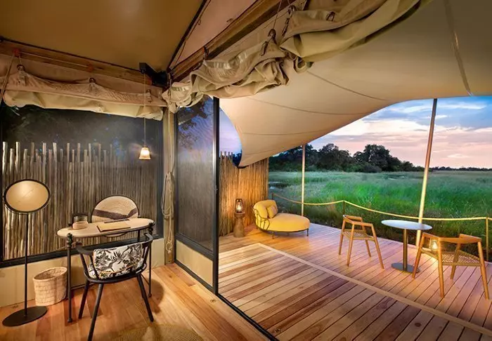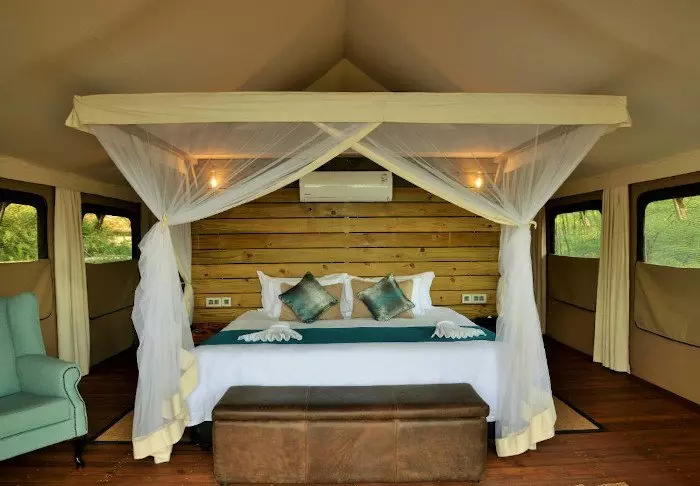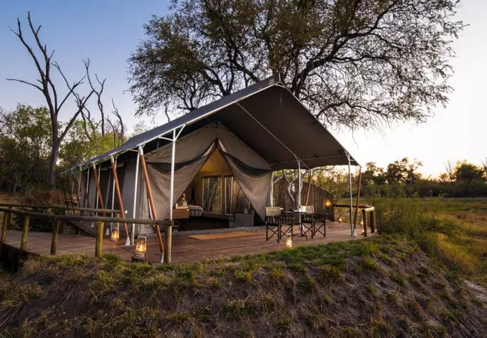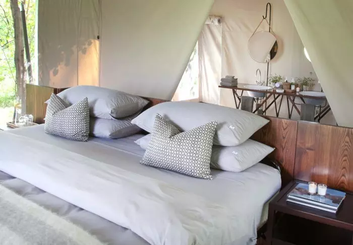 De 16 tenten hebben elk eigen badkamer met vrijstaand bad, airco, thee- en koffiefaciliteiten en eigen balkon. De tenten zijn allemaal gebouwd platformen die op palen staan, zodat de lucht onder de tenten kan circuleren. Alle tenten zijn hetzelfde ingericht – het enige verschil is of u uitzicht wilt op de rivier of op de tuin.