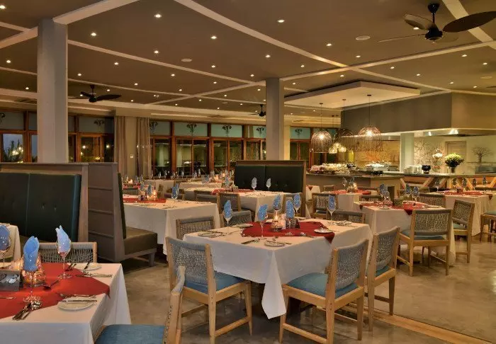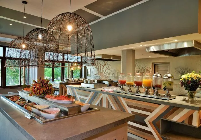 Het restaurant biedt zowel à la carte gerechten als een buffet en het eten is heerlijk en wordt bereid met lokale ingrediënten.