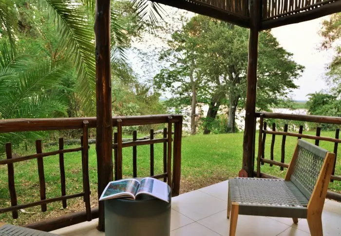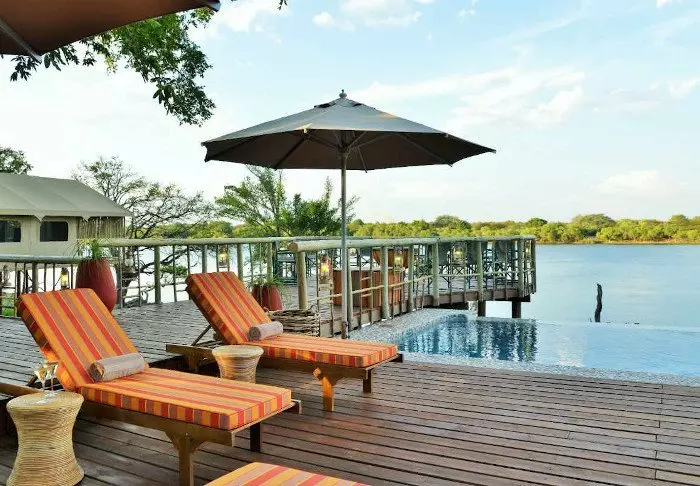 Alle 15 villa’s zijn gebouwd op palen in de Chobe-rivier. Vanaf de grote balkons is er een uniek uitzicht op de rivier en het grote eiland Sedudu, dat midden in de rivier ligt. Eigenlijk hoeft u uw terras niet eens te verlaten als u hier bent. De hele dag kunt u hier zitten en genieten van het leven in de rivier. Olifanten die komen baden; boten die langs varen met toeristen; nijlpaarden die in het water plonzen en vogels die op de terrasleuning komen zitten. Krijgt u dorst, dan kunt u een greep doen in uw eigen minibar, die gevuld is met koele drankjes.