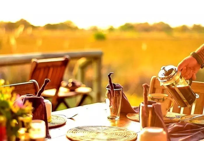 Je eet onder de sterrenhemel en het eten is goed! Vers gemaakt, smaakvol en voedzaam – je krijgt echt trek als je op safari bent. Natuurlijk wordt er koud bier en wijn geserveerd bij het eten, als je dat wilt, en er staat de hele dag thee en koffie klaar.
