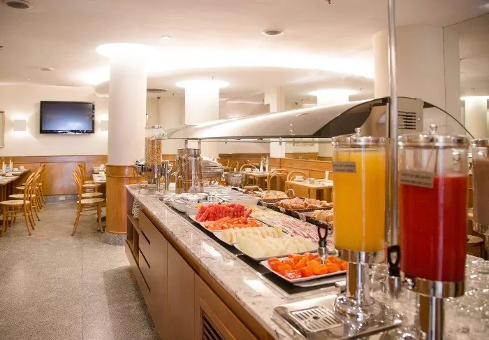 Het restaurant van het hotel bevindt zich op de begane grond en hier wordt elke dag een uitgebreid ontbijtbuffet geserveerd. Het restaurant biedt ook lunch en diner, maar dit is à la carte. Als je trek hebt, kun je lichte maaltijden en gekoelde drankjes bestellen in het restaurant en de bar op het dak van het hotel. Op een heldere dag kun je vanaf hier het Christusbeeld op de top van de berg Corcovado zien.