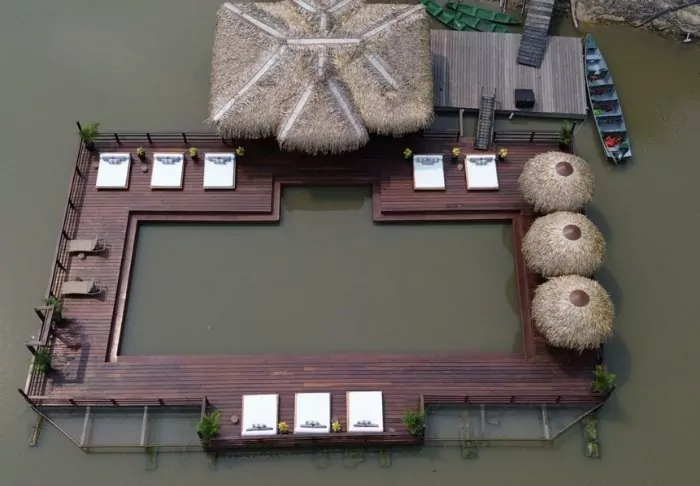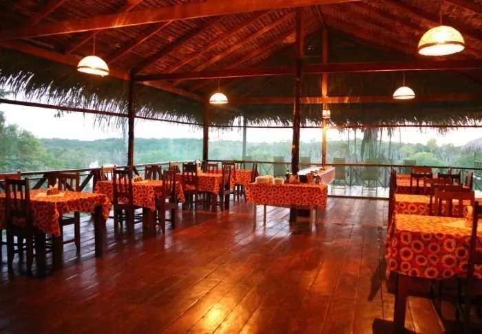 Na je ervaringen in de jungle kun je genieten van de omgeving van de lodge, waar je naast het restaurant een zonneterras, een gemeenschappelijke lounge met verschillende spelletjes en een gezellige tuin vindt. Je kunt ook in de rivier zwemmen en misschien heb je het geluk om een van de rivierdolfijnen te zien die vaak in het gebied verblijven. Er staan ook kajaks tot je beschikking als je zelf op avontuur wilt gaan.