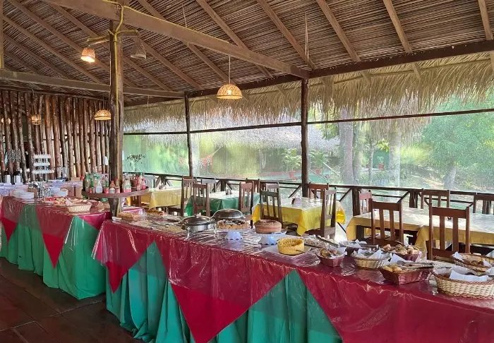 De lodge heeft twee restaurants. Het ene is binnen en hier worden het ontbijt en diner geserveerd. Het andere is buiten bij de rivier de Salobra, waar je midden in het prachtige landschap van je lunch kunt genieten.