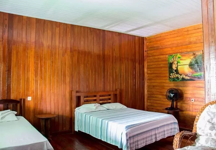 Bij aankomst in de lodge krijg je een verfrissend welkomstdrankje aangeboden en wordt je kamer toegewezen. De lodge heeft slechts 18 rustieke kamers en de sfeer is gezellig en gastvrij. De kamers zijn gebouwd van hout uit de omgeving, wat goed harmonieert met de omringende natuur. De kamers zijn eenvoudig ingericht, maar mooi en schoon, en ze hebben alles wat je nodig hebt; een bed, plafondventilator en een en-suite badkamer met op natuurlijk wijze verwarmd water. Bovendien zijn de ramen voorzien van horren, hoewel door de hoge pH-waarde in de rivier de Tupana muggen zich moeilijk kunnen voortplanten, waardoor muggen hier het grootste deel van het jaar geen probleem vormen.