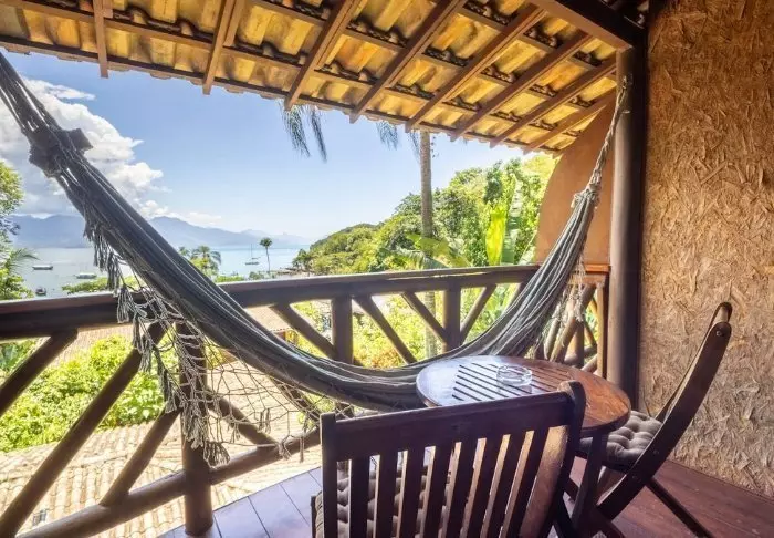 Alle kamers hebben een eigen balkon met een hangmat waarin je kunt liggen en genieten van het prachtige uitzicht op de zee en het strand van Vila do Abraão. Alle kamers hebben gratis wifi, airconditioning, een plafondventilator, een minibar en een kluisje.