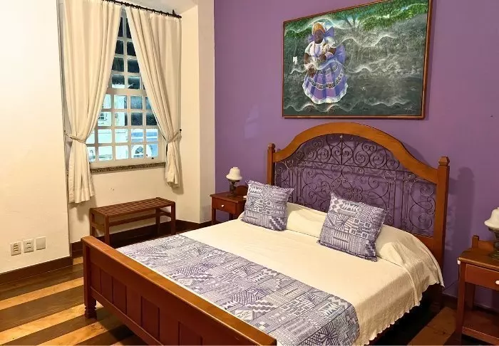 Midden op het plein Largo do Cruzeiro de São Francisco, in het centrum van de kleurrijke historische wijk van Salvador, Pelourinho, ligt dit charmante boetiekhotel. Vanuit de kamers van het hotel kijk je neer op het gezellige plein waar café- en restaurantgasten genieten van een lunch of een kopje koffie. Aan het einde van het plein staat majestueus de indrukwekkende São Francisco-kerk, die ‘s avonds prachtig verlicht is.