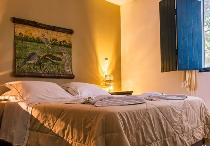 Het gezellige hotel Pousada Naturalia ligt te midden van een prachtig landschap en het geluid van de oceaangolven en vogelgezang. Het hotel is gebouwd met natuurlijke materialen en past goed in het omringende tropische bos.