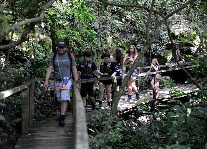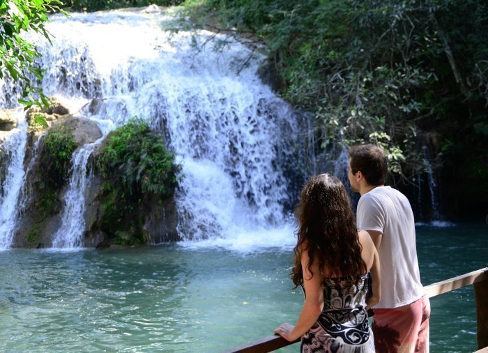 waarna je wordt meegenomen op een begeleide wandeling door het weelderige bos rond de Rio Mimoso, langs 9 watervallen van verschillende vormen en groottes. Onderweg kun je zwemmen onder de watervallen en in natuurlijke bassins, kleine grotten verkennen en uitkijken over de Serra da Bodoquena met zijn watervallen en bergen die de vallei rond de rivier de Mimoso vormen. Als je lef hebt, kun je van een 6 meter hoge brug in een natuurlijke waterpoel springen. Op sommige stukken kun je ook een korte boottocht maken en ontspannen terwijl je van de omgeving geniet.