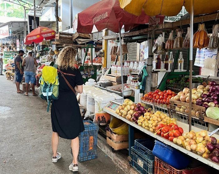 Vervolgens gaat de reis naar de lokale markt om ingrediënten te kopen voor de kookles van die dag. Je leert hoe je ‘moqueca’, een lokale vis- en zeevruchtstoofpot, en een typisch dessert kunt maken.
