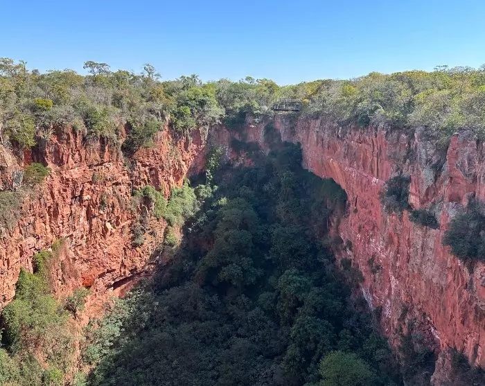 Vanaf de kristalheldere rivieren gaat de excursie naar Buraco das Araras, een groot zinkgat met een omtrek van wel 500 meter en een diepte van ongeveer 100 meter. Het zinkgat ligt in een schilderachtige natuurlijke omgeving, maar de belangrijkste attractie zijn de prachtige en krijsende groenvleugelara’s (Ara chloropterus) die hier leven en hun nesten bouwen in de rotsspleten.