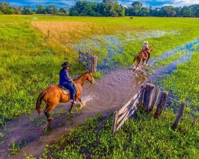 Paardrijden – de prachtige Pantanalpaarden voeren je langzaam door het gebied, zodat je de wilde dieren vanuit vogelperspectief kunt bekijken.