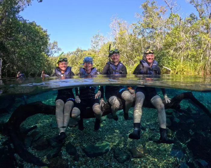 De tocht begint met een korte autorit gevolgd door een wandeling van ongeveer 1,5 kilometer door het weelderige regenwoud voordat je bij de rivier aankomt. Je gids geeft een gedetailleerde introductie tot het snorkelen, zodat iedereen mee kan doen, ook al heb je misschien nog nooit gesnorkeld. Het leven onder het wateroppervlak van dichtbij zien is een onbeschrijfelijke ervaring. Op sommige plekken kun je je gewoon met de stroom mee laten drijven, terwijl je op andere plekken moet zwemmen. De watertemperatuur is ongeveer 26 graden en zwemmen tussen kleurrijke vissen en weelderige waterplanten is een absoluut unieke ervaring – het voelt alsof je in een groot aquarium bent!