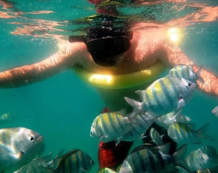 Je kunt ook van tevoren een boottocht boeken naar de schitterende blauwe lagune, waar je kunt zwemmen en snorkelen met kleurrijke vissen in het kristalheldere water.