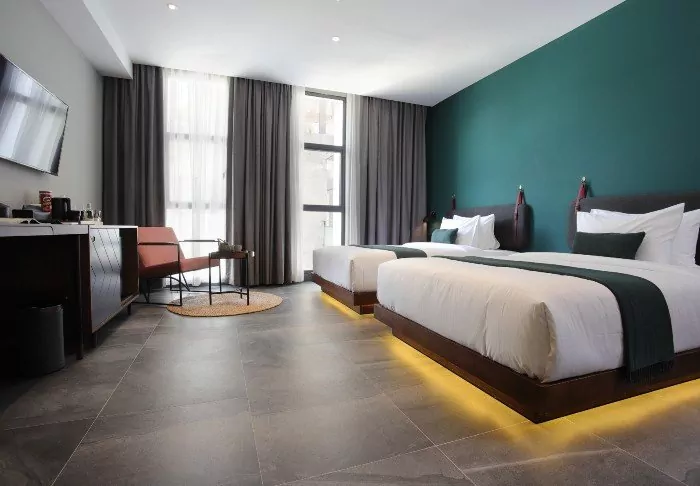 Het hotel is modern en licht ingericht met leuke rustieke details – let vooral op de wenteltrap, de zuilen en de muren. Op verschillende plekken in het hotel zijn gezellige zithoekjes gemaakt waar u kunt ontspannen met een goed boek.
