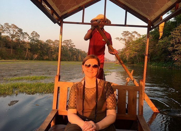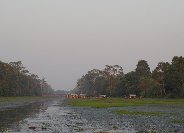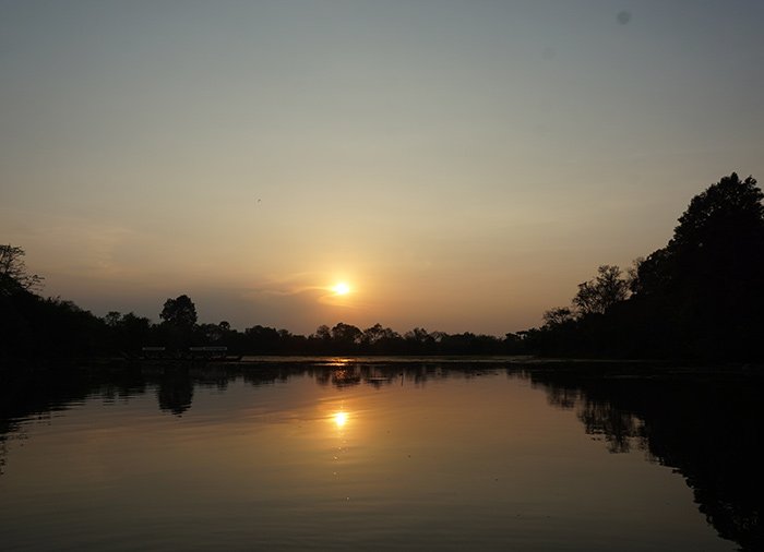 Gondelvaart bij zonsondergang bij Angkor Thom