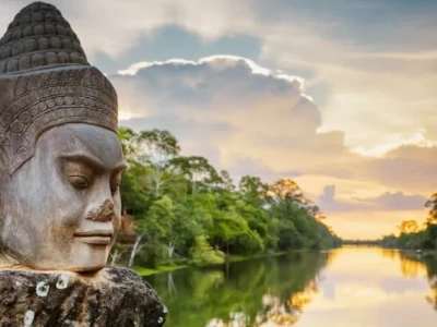 In het noorden van Cambodja, ten noorden van Siem Reap, vindt u het Angkor complex, een van de belangrijkste archeologische vindplaatsen in Zuidoost-Azië; dit complex staat op de UNESCO-werelderfgoedlijst