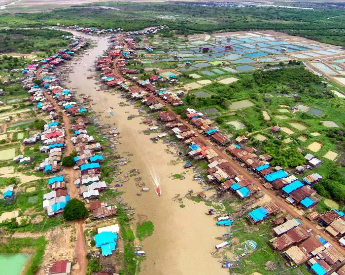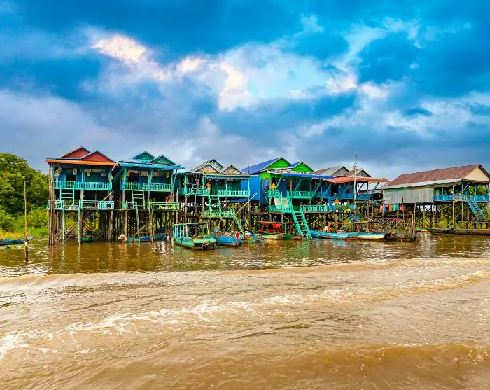 De excursie gaat verder naar het Tonle Sap-meer, waar je naar een van de vele vissersdorpjes langs het meer wordt gevaren: Kompong Khleang (van augustus tot begin februari) of Chong Khneas (van midden februari tot juli). Hier kom je meer te weten over het leven van de vele gezinnen die voornamelijk van de visvangst leven. De gezinnen wonen in de karakteristieke kleurrijke huizen die op lange palen staan, zodat ze het hoge waterpeil aankunnen tijdens het regenseizoen, wanneer de smalle straatjes van het dorp veranderen in kleine kanalen. Tijdens het droge seizoen, wanneer het waterpeil laag is, zijn de lange palen goed te zien.