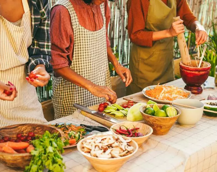 Vandaag leer je hoe je traditionele Laotische gerechten maakt om aan de lokale monniken te geven. Je wordt opgehaald bij het hotel en naar de Phosy-markt gebracht, waar je samen met je gids een lokaal gezin ontmoet. Samen doe je boodschappen voor het koken van de dag, waaronder vis, groenten en fruit. Na de boodschappen ga je met het lokale gezin naar hun huis, waar je leert hoe je de traditionele gerechten moet bereiden. Je helpt onder andere bij het maken van kleefrijst (khao-naai), bamboescheutensoep (Keang Nor Mai), gestoomde vis in bananenbladeren (Mok Pa), Luang Prabang-stoofpot (Ork Lamb) en auberginesaus (Jeo Mak Kheua). Wanneer de gerechten klaar zijn, ga je naar de nabijgelegen tempel. Hier zullen je gids en het gezin je door de hele ceremonie leiden, waarin je aalmoezen geeft en een zegen krijgt van de monniken. Na de ceremonie neem je afscheid van de monniken en ga je terug naar het huis van het lokale gezin voor de lunch. Dit is ook een voor de hand liggende kans om meer te weten te komen over de Laotiaanse cultuur en over hoe het dagelijkse leven van het gezin er gewoonlijk uitziet.