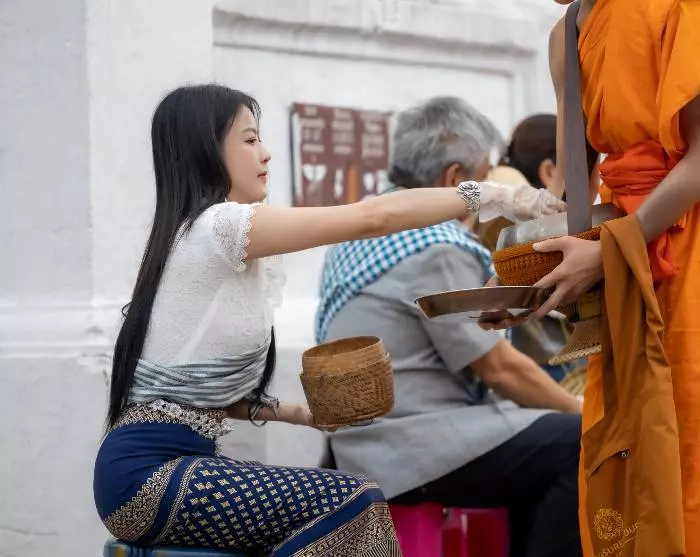 Vandaag neem je deel aan het verrichten van een goede daad volgens het boeddhisme: aalmoezen geven. Het geven van aalmoezen wordt gezien als een belangrijke religieuze praktijk in het boeddhistische geloof en de cultuur van Laos. Je kunt bijvoorbeeld geschenken geven aan monniken, deelnemen aan religieuze ceremonies en mensen in nood helpen. Het is een daad van liefdadigheid en medeleven. Deze daden worden geacht geluk te brengen en te leiden tot een gezond en gelukkig leven van welvaart en spirituele verdiensten, zowel in het huidige leven als in toekomstige wedergeboortes.