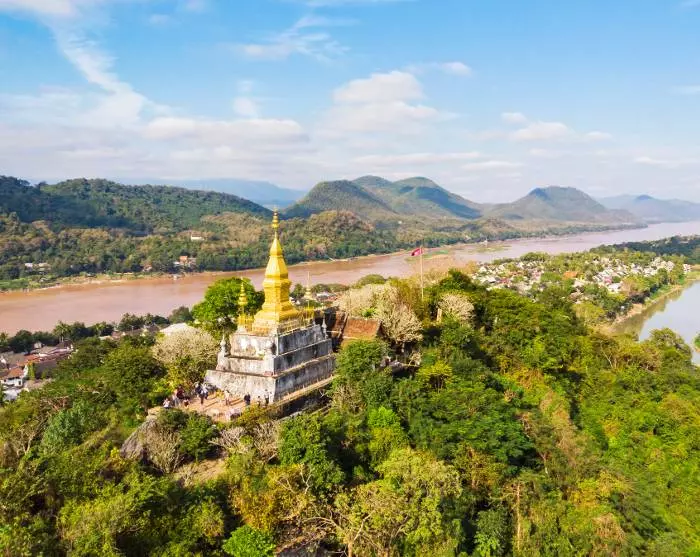 De excursie gaat verder naar de Phousi-berg, die op slechts 1 km afstand ligt. Hier wachten 328 treden op je, naar het hoogste punt van de Phousi-berg. Onderweg omhoog passeer je kleine tempels en Boeddhabeelden, waar je kunt stoppen als je even op adem moet komen. Al je inspanningen worden volledig beloond wanneer je op de top staat. Hier kun je genieten van een schilderachtig panoramisch uitzicht op het prachtige Luang Prabang met zijn rivieren, tempels en weelderige landschappen met bergen op de achtergrond.