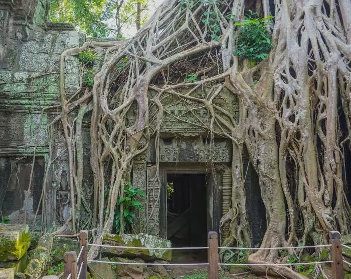 De ruïnes en tempels zijn prachtig gelegen in een gebied dat is omgeven door jungle en een gracht. Het is hier vredig en het lijkt alsof je een totaal andere wereld bent binnengestapt.
