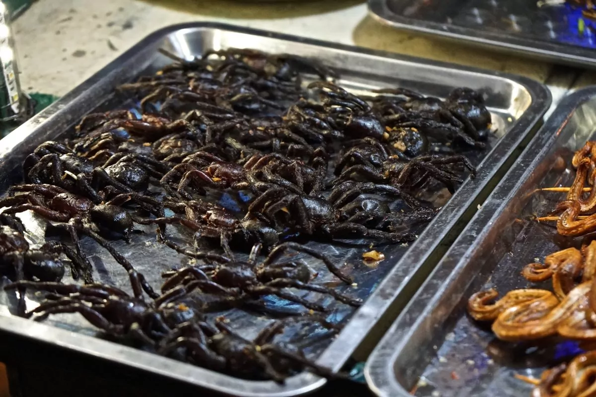 U wordt opgehaald bij het hotel en zet koers naar de bruisende en historische hoofdstad Phnom Penh. Onderweg kunt u genieten van het prachtige landschap met de rijstvelden en plantages. U stopt onder andere in de plaats Skuon bij de beroemde markt voor Cambodjaanse delicatessen, zoals gefrituurde spinnen. De Cambodjanen komen van heinde en verre naar deze markt voor hun lievelingseten. Ze eten eigenlijk bijna alles en hier heeft u de mogelijkheid om ze te zien genieten of om zelf iets te kopen en te proeven.