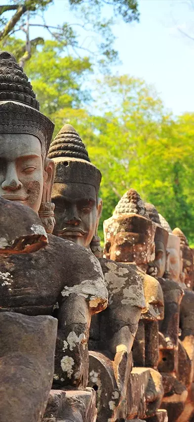 De ruïnestad en de tempels zijn prachtig gelegen in een gebied omringd door een gracht en door de jungle. Het is hier heel vredig en het lijkt alsof u in een heel andere wereld binnentreedt.