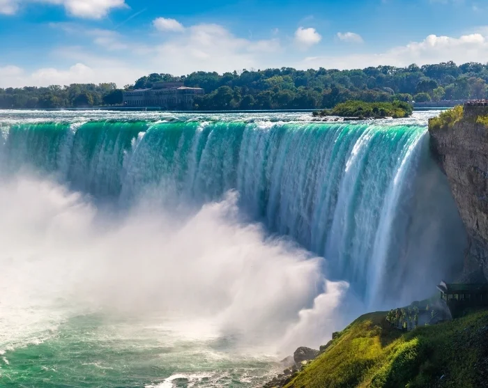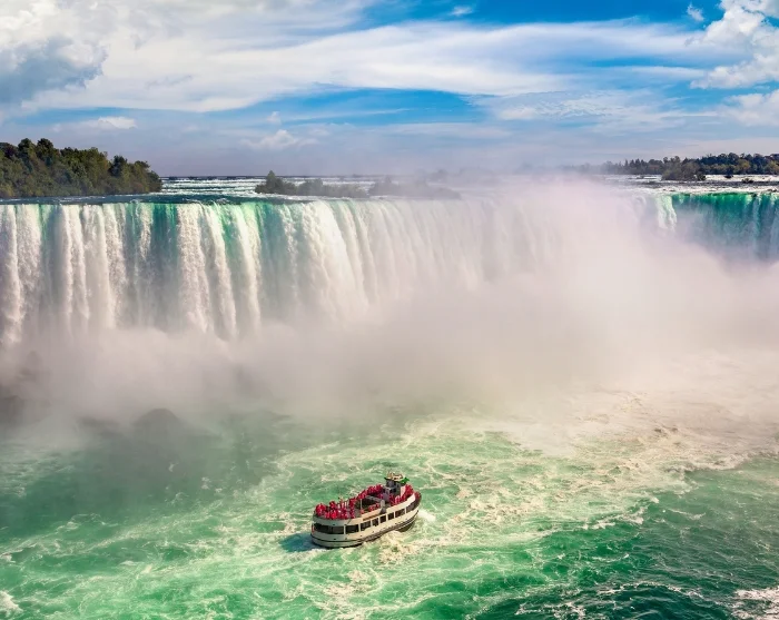 Hier voel je de natuurkrachten echt, wanneer je aan een onvergetelijke excursie achter de grootste van de drie watervallen, de Horseshoe Falls, begint. Je staat op slechts een paar meter van het kolkende water dat vlak voor je naar beneden stort.