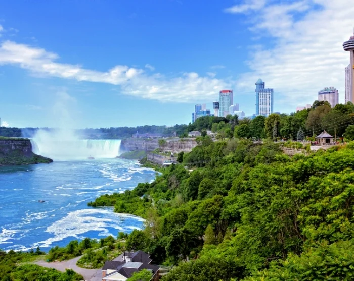 Zodra u uw auto heeft opgehaald, rijdt u richting de Niagara Falls – een van de meest iconische natuurwonderen ter wereld. De rit is goed te doen en al snel checkt u in bij uw centraal gelegen hotel in Niagara Falls. U bent na de reis wellicht wat moe, maar voordat u zich installeert, is het leuk om alvast even een wandeling te maken en de sfeer van de omgeving te proeven. Het duurt niet lang voordat u een onmiskenbaar gezoem hoort – het donderende geweld van bijna 2,8 miljoen liter water dat elke seconde van de drie spectaculaire watervallen van Niagara Falls naar beneden stort.