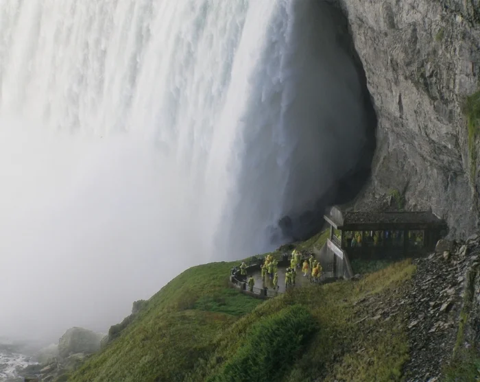 Aan de rand van de watervallen staan is op zichzelf al indrukwekkend, maar vandaag beleeft u iets bijzonders: een tour achter Horseshoe Falls. Met uw voucher krijgt u toegang tot aangelegde tunnels die u naar twee uitkijkplatformen brengen: één achter de waterval en één aan de voet ervan. Hier, slechts enkele meters verwijderd van de ongetemde kracht van de natuur, zult u dankbaar zijn voor de gele regenponcho die u aan het begin van uw avontuur ontvangt.