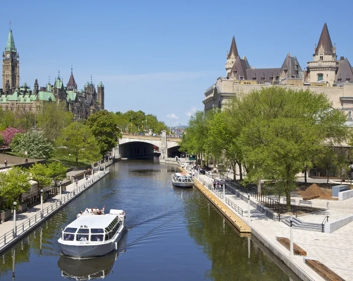 Direct naast het parlement ligt het prachtige Rideaukanaal, dat uitmondt in de Ottawarivier. In de zomer is het een aanrader om een rondvaart met gids te maken en de stad vanaf het water te bewonderen. In de winter verandert het kanaal, zodra het dichtvriest, in een sfeervolle openlucht schaatsbaan.