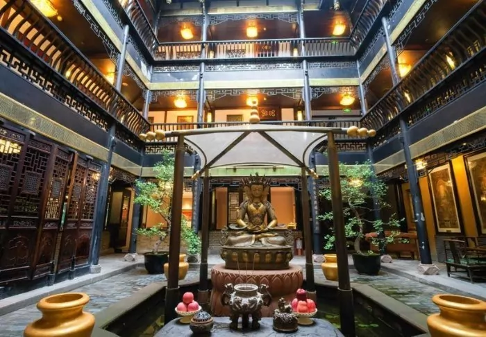 Buddha Zen Hotel is een charmant hotel in traditionele Chinese stijl in het hart van de oude binnenstad van Chengdu. Het hotel ligt dicht bij het historische Wenshu-klooster en wordt omringd door pittoreske straatjes met traditionele theehuizen en kleine, charmante winkeltjes, die samen een authentieke sfeer creëren die nergens anders te vinden is.