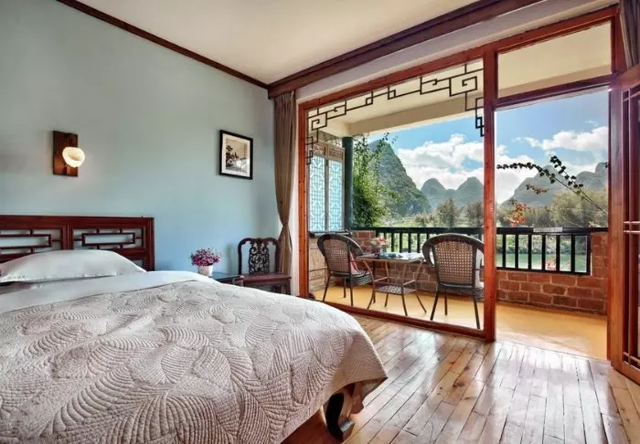 Net buiten Yangshuo vindt u de vredige Yangshuo Mountain Retreat in een adembenemende omgeving tussen weelderige bomen en groene kalkstenen bergen aan de oevers van de Yulong-rivier. Hier kunt u werkelijk innerlijke rust vinden, terwijl u de prachtige natuur in u opneemt.
