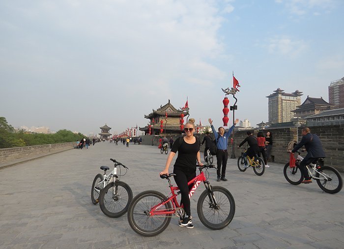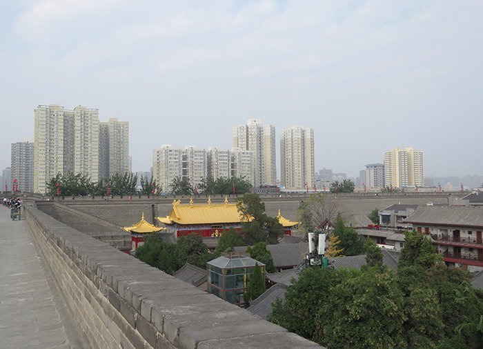 De stadsmuur van Xi’an is de grootste trots van de stad. In China zijn vrijwel alle oude stadsmuren gesloopt, maar in Xi’an zijn de muren behouden. Ze zijn gerestaureerd en de grachten zijn schoongemaakt. De plaatselijke inwoners gebruiken de muur vaak voor een stevige wandeling of voor hardlopen na het werk en na school, terwijl de toeristen de route op de fiets doen.