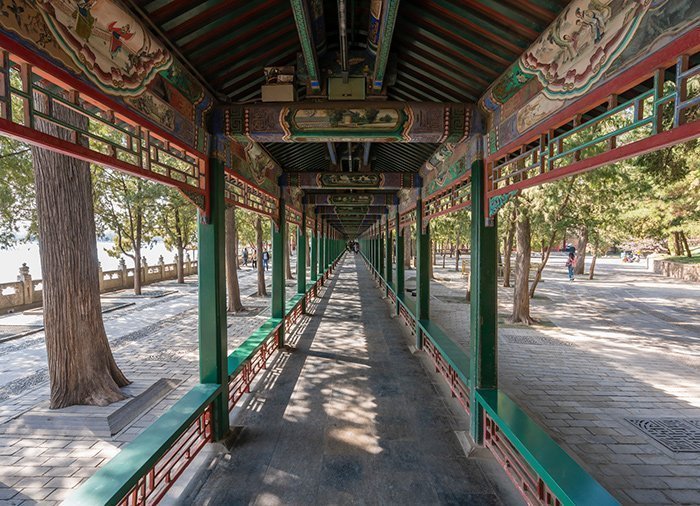 De excursie begint bij de oostelijke ingang waar de paleizen staan. Daarna maakt u een wandeling door ‘de Lange Gang’ die keizer Qianlong voor zijn moeder liet bouwen, zodat ze ook bij regen en in de winter van het uitzicht op het Kunming-meer kon genieten. De gang is 728 meter lang en versierd met 14.000 kleurrijke schilderingen. Van het ene uiteinde naar het andere uiteinde passeert u vier achthoekige paviljoens die de vier seizoenen vertegenwoordigen.
