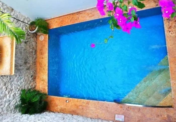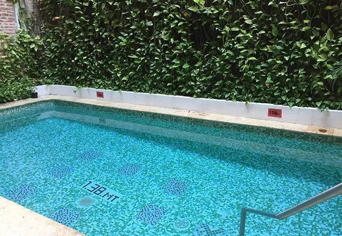 In het centrum van het hotel ligt een klein zwembad waar je kunt genieten van een verfrissende duik in de middaghitte van Cartagena.