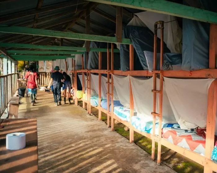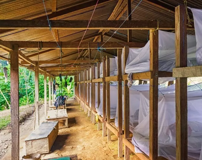 Je overnacht in 3 verschillende jungle camps tijdens je reis naar de Verloren Stad en op de terugweg. De kampen zijn vrij simpel, met gedeelde toilet- en wasfaciliteiten. Ze bieden plaats aan ongeveer 50 personen en worden gedeeld met meerdere groepen, dus vergeet je oordopjes niet mee te nemen. De accommodatie bestaat uit stapelbedden of hangmatten met klamboes. Lakens en dekens zijn aanwezig in de kampen, maar we raden aan om je eigen lakenzak mee te nemen. ‘s Nachts kan de temperatuur dalen tot 18-22 graden Celsius. De bedden zijn beschut onder een luifel, dus ze zijn beschermd tegen regen.