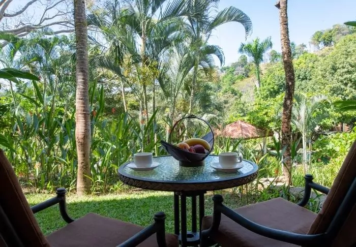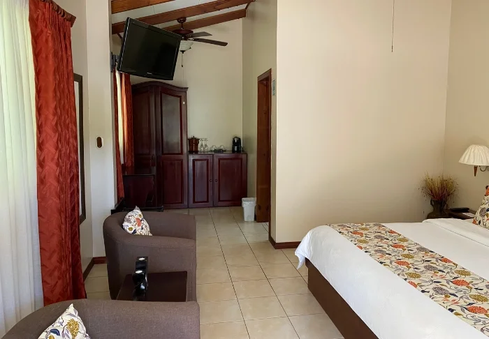 De kamers zijn voornamelijk gemaakt van hout en ingericht in natuurlijke kleuren met groene tinten. Alle kamers hebben airconditioning, kabel-tv en een minikoelkast en hebben een eigen badkamer met een haardroger. Elke kamer heeft ook zijn eigen kleine overdekte veranda met een paar stoelen waar je ontspannen kunt genieten van de prachtige groene omgeving – en misschien zelfs een kleurrijke vlinder of een kolibrie ziet.