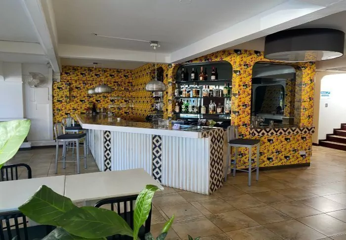 De kleine bar serveert gekoelde dranken, cocktails en lichte snacks.